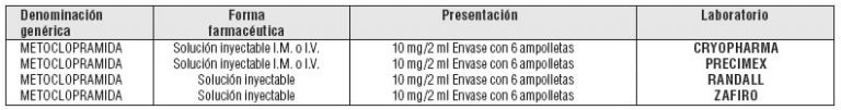 Satisfacción inyectable y tabletas Gastrocinético, antiemético central y periférico...